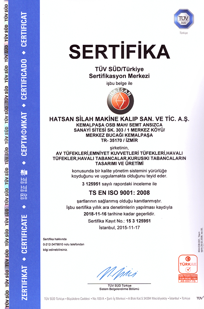 HATSAN kalitesi ve rekabetçi fiyatları ile dünya çapında haklı bir ün kazanmıştır. HATSAN üretiminin %95’ini dünyada 90’dan fazla ülkeye ihraç etmektedir. HATSAN savunma amaçlı tüfekler dünyanın birçok emniyet teşkilatı tarafından kullanılmaktadır ve HATSAN dünyaca ünlü birçok tüfek markası için üretim yapmaktadır.